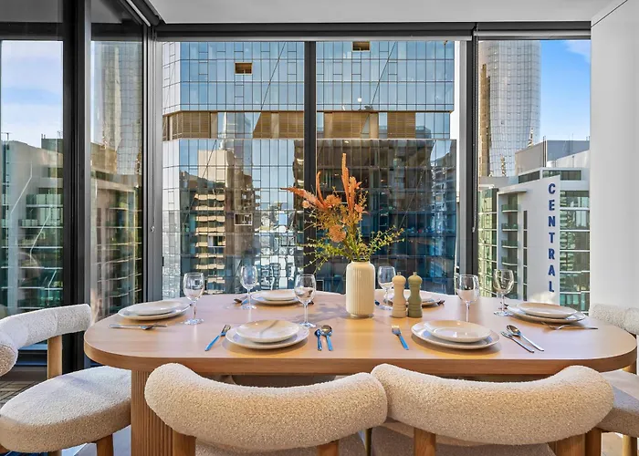 Skyhigh Views 3Br Comfort With Parking apartamento, situado num o bairro Collins Street, perto de Supreme Court of Victoria.